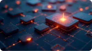 Abstract visual of layered modular cloud systems with orange change notification indicators.